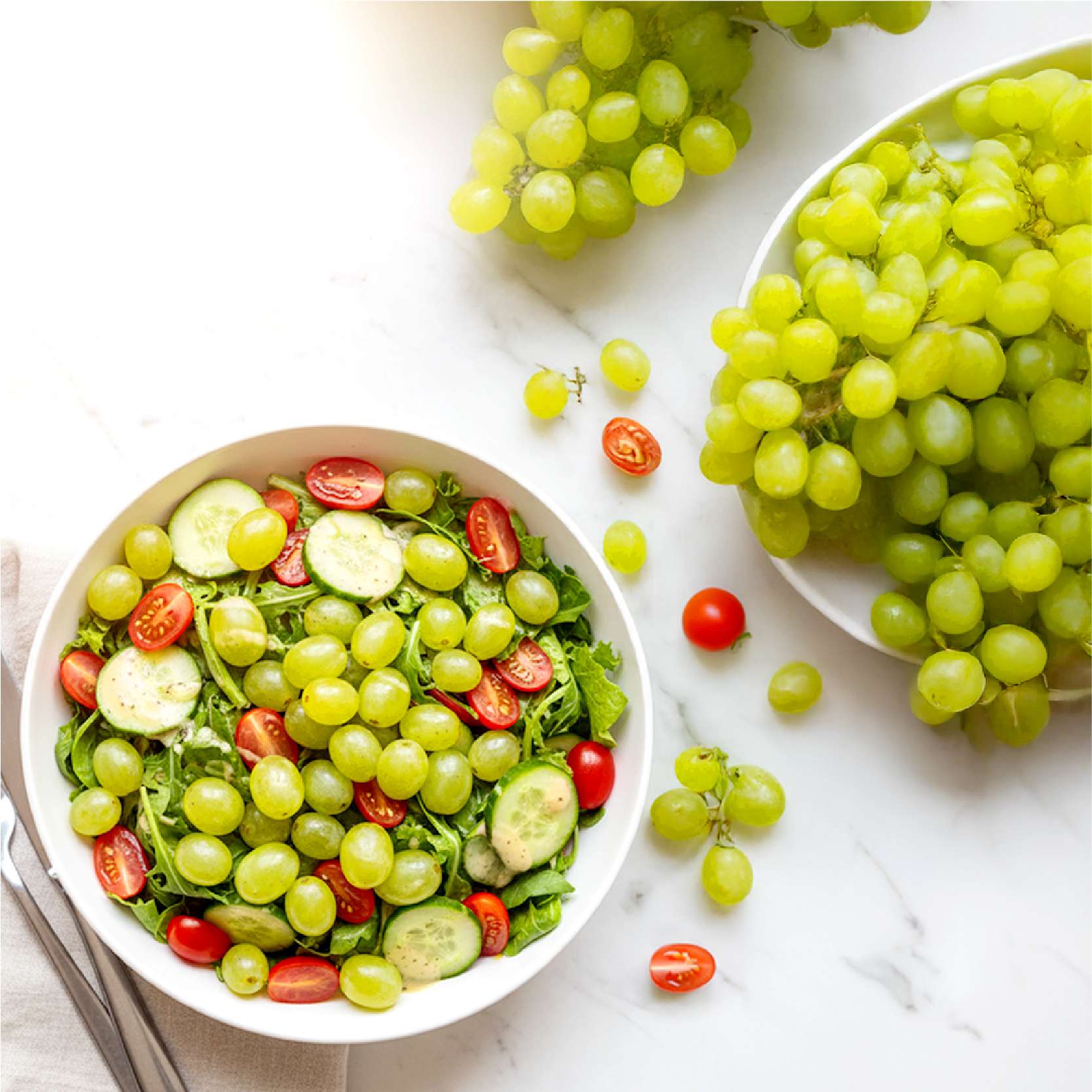 A refreshing mix of crisp seedless grapes and juicy apples, tossed in a creamy honey-lemon dressing. Each bite delivers a perfect balance of sweetness, crunch and elegance, making this classic salad a timeless delight for any occasion.
